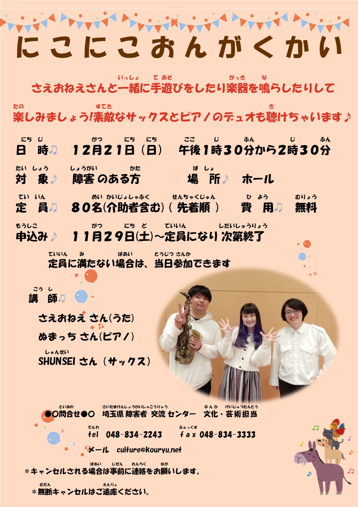 問合わせ 埼玉県障害者交流センター 文化芸術担当