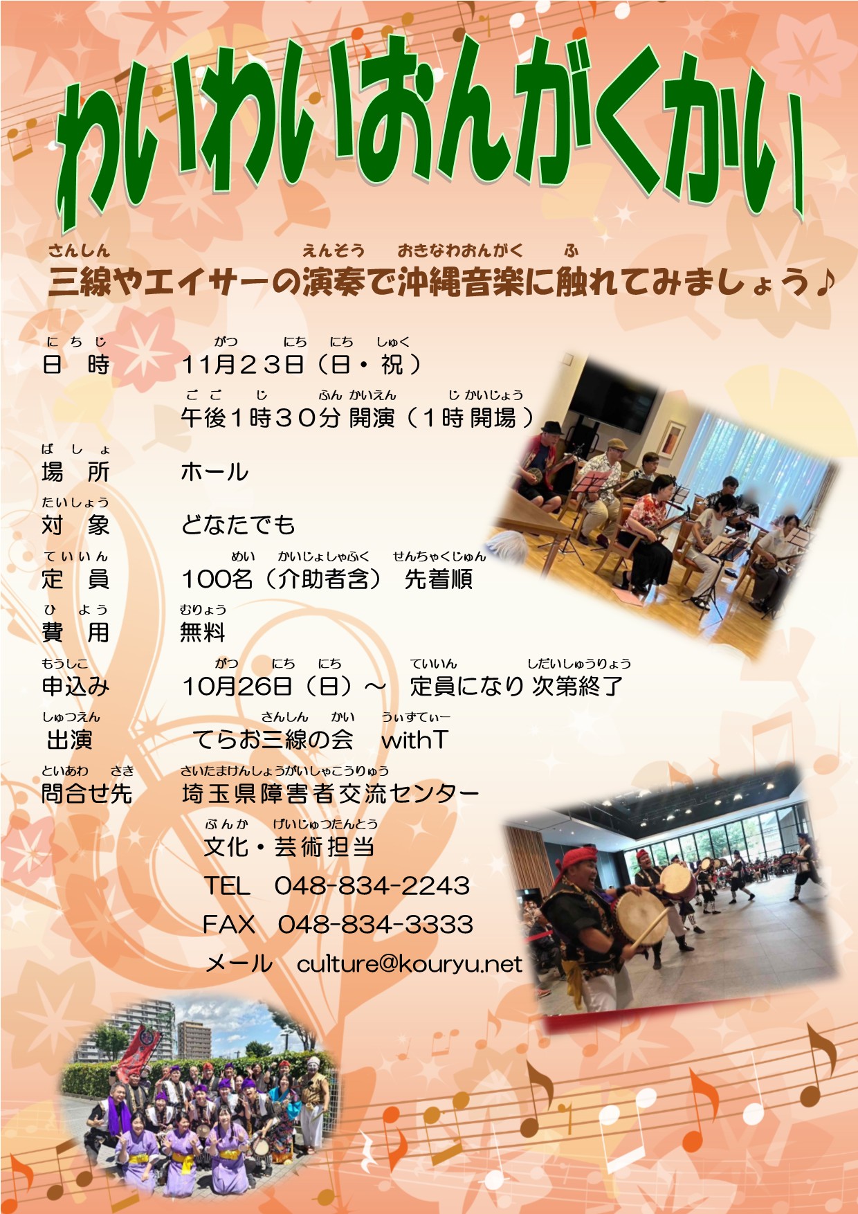 日時 11月23日 日 祝 午後1時30分開演 1時開場