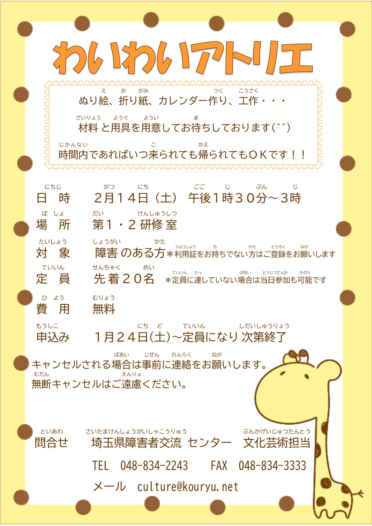 問合せ 埼玉県障害者交流センター 文化芸術担当