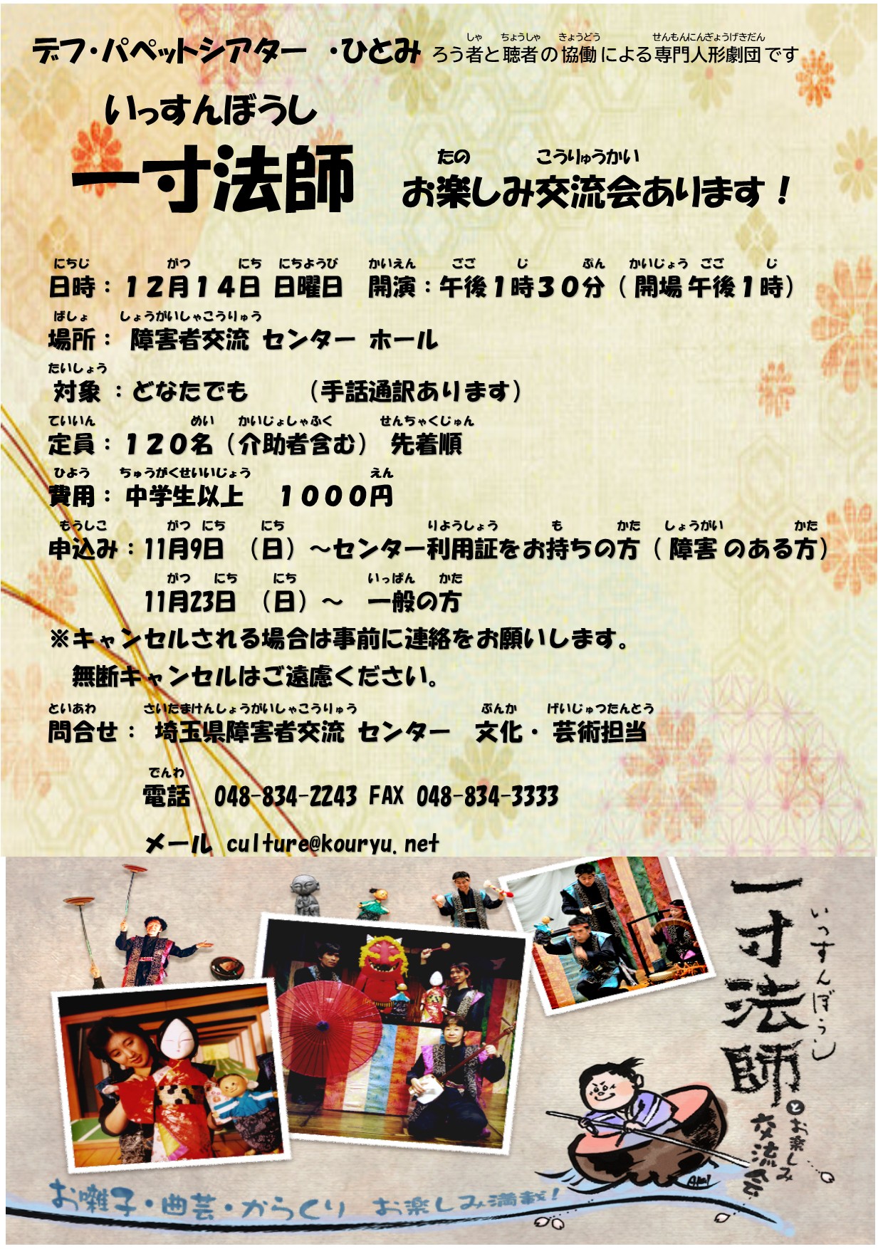デフパペットシアター「一寸法師」を開催します