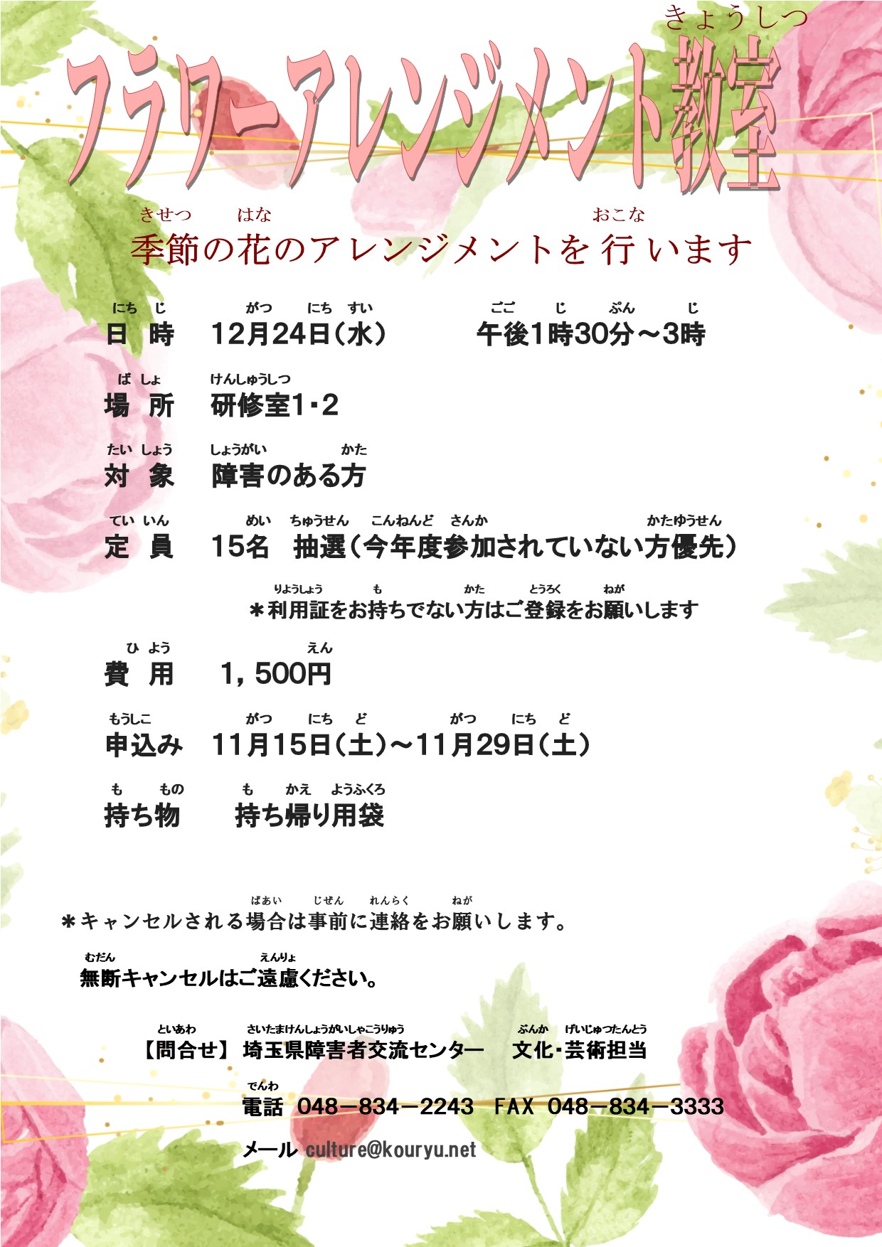 問合せ 埼玉県障害者交流センター 文化・芸術担当
