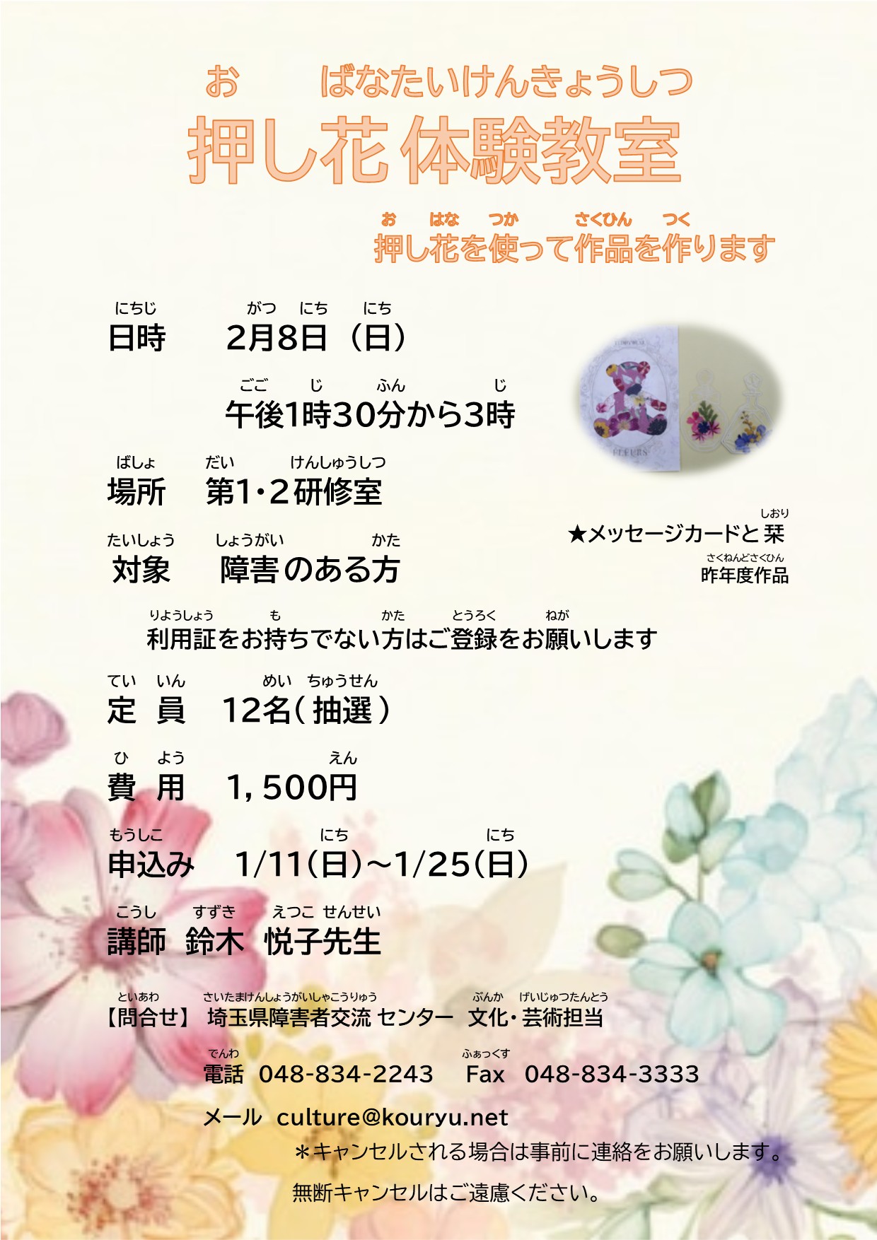 問合せ 埼玉県障害者交流センター 文化芸術担当