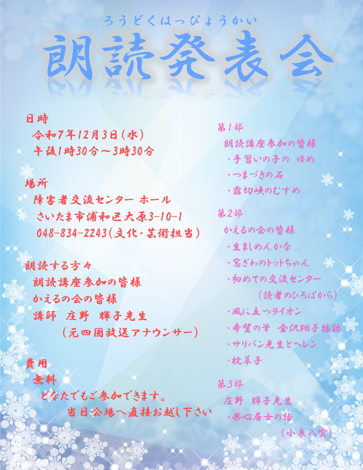 朗読する方々 朗読講座参加の皆様 かえるの会の皆様