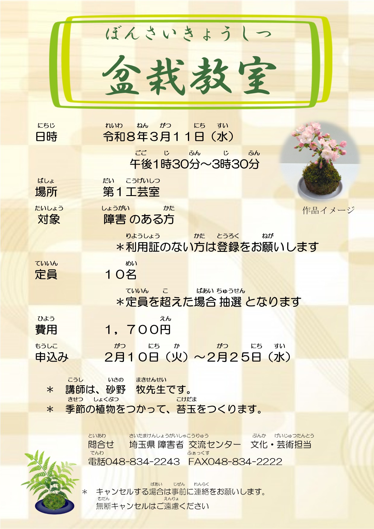 問合せ 埼玉県障害者交流センター 文化芸術担当