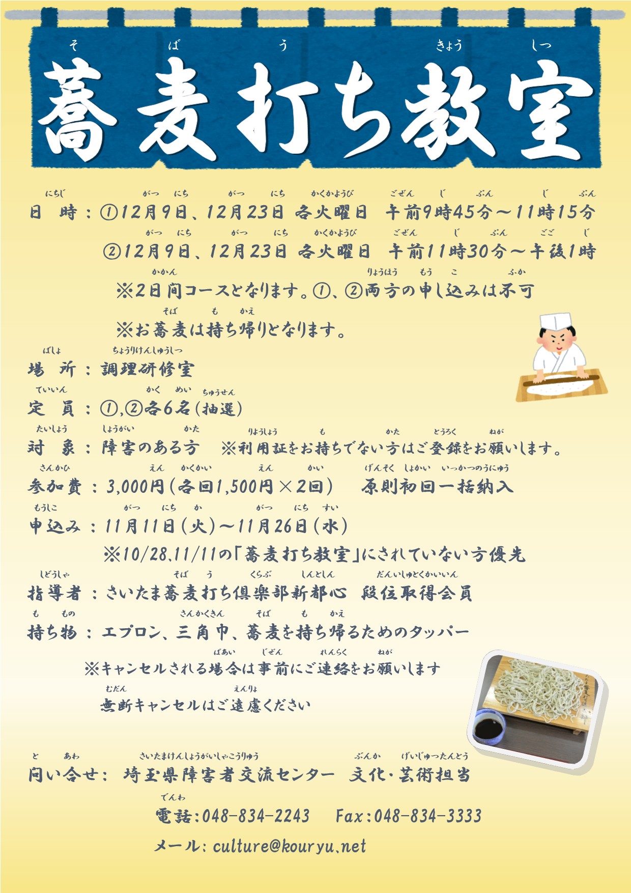 ※10/28 11/11の蕎麦打ち教室に参加されていない方優先